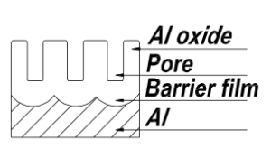 - Hot process: hydration of anodic oxide to high temperature by immersion in acidified water (100°C – pH 6 ca.)